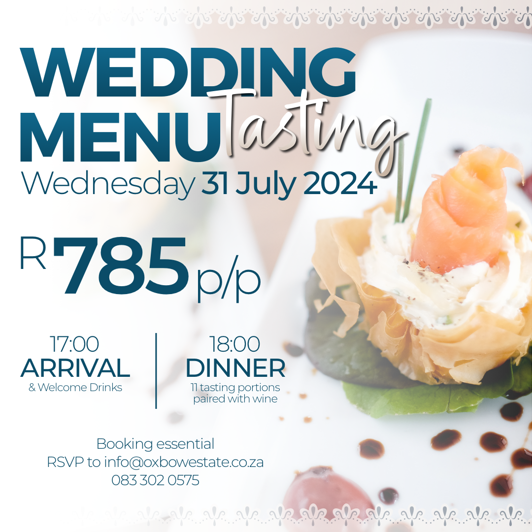 Booking is ESSENTIAL, please RSVP to info@oxbowestate.co.za or contact us on 083 302 0575